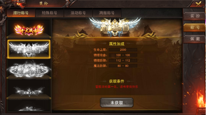 除了超酷的外形,还有绚烂的称号。称号分为四类,排行称号,装扮称号,活动称号和跨服称号。排行称号一般会比较固定,掉落排行即消失。特殊称号的获取方式可以通过商城购买或运营活动获取。活动称号获取方式一般为运营活动,且不易获得。跨服称号可以通过跨服3V3或保护队长活动获得。鼠标滑动到称号即可查看称号的剩余时间,平时可以多多关注称号,有时候会因称号过期而导致战力下降。